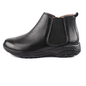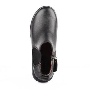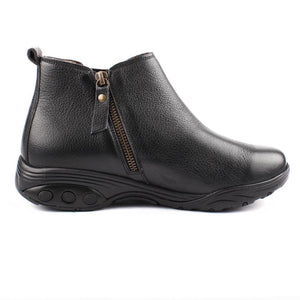Therafit's Paige Leather Bootie features fashionable uppers and durable materials. With full grain leather uppers, this light-weight bootie has a removable insole with superior arch support and deep built-in heel cushioning. Durable zipper closure for ease of entry. Great for year-round wear, this boot will keep you on trend.