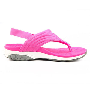 Summer is Therafit's new everyday sandal. Featuring bold fabric uppers, this sandal will bring casual comfort to your everyday wear. With contoured footbeds, superior arch supports, and deep heel-cups, the Summer will stabilize and support your foot during those daytime outings and evening strolls.