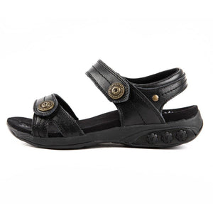 Therafit’s Grace leather sandal is the timeless classic. The padded collar and adjustable straps make it the perfect year-round sandal. Featuring Therafit’s contoured footbed, superior arch support, and deep heel-cups that stabilize and support your foot. Wear it everyday and everywhere - the Grace! Therafit Footwear products are designed for optimal support and cushioning with the goal of providing you with reliable comfort, protection and relief from arch pain, heel pain, plantar fasciitis, pronation, and other foot pain symptoms. Fits Medium to Wide Width.