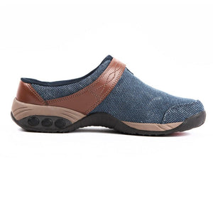 Therafit's Austin Denim Slip On is the new trend in comfort clogs. The Austin Denim has a delicate balance of breathable denim fabric with leather trimmed uppers and tough, rubber soled bottoms. Available in colors inspired by nature, featuring superior arch support, deep heel cups and removable socklining insoles that lift and support your foot.